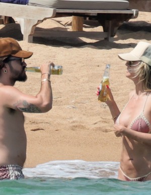 Que ce soit sur les podiums ou lors de ses moments de détente à Porto Cervo, Heidi Klum incarne la beauté et la joie de vivre. Sa présence en maillot de bain, casquette marron clair, et savourant une bière dans l'eau de la mer, ajoutait une touche de style décontracté et de plaisir, confirmant son statut d'icône de la mode et de la beauté.
