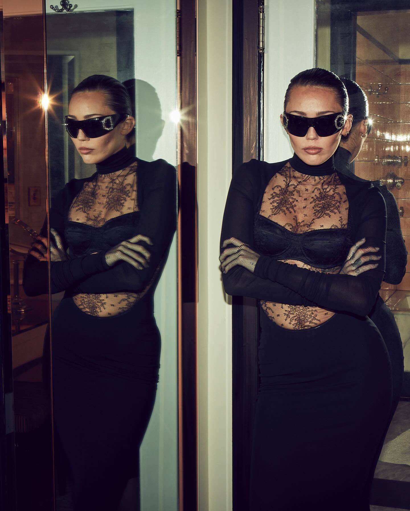Les images, montrent Cyrus dans une variété de looks, allant du glamour au rock. Dans les clichés, Cyrus apparaît dans des robes de soirée scintillantes, des tenues décontractées et des looks beauté simples et élégants. Elle est également coiffée de cheveux courts et noirs, qui lui donnent un air rock and roll. Cyrus, 29 ans, est une chanteuse américaine qui a connu un succès international avec son single "Can't Be Tamed" en 2010. Elle est également connue pour son style audacieux et son sens de la mode.