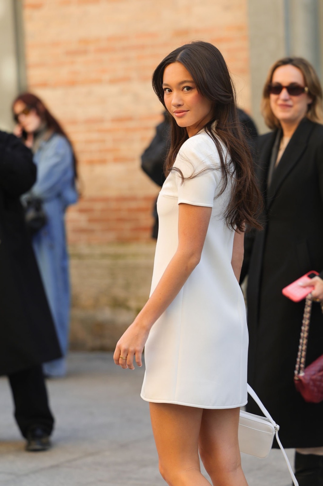 Les photographes, débordés par cette vision immaculée, ont dû s'assurer que leurs appareils pouvaient suivre la vitesse fulgurante de Lily Chee. La Tour Eiffel, en arrière-plan, a presque perdu son éclat face à cette apparition lumineuse.