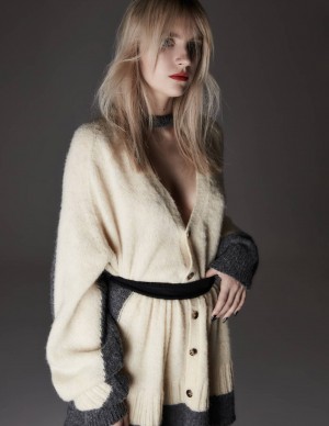 Sa pose, nonchalante mais étudiée, semble dire : "Je viens de combattre sept nains pour ce shooting photo, et je n'ai pas un cheveu de place". Ses yeux semblent chercher quelque chose au loin, peut-être le script du prochain grand rôle ou juste le serveur avec le plateau de petits fours. Et cette moue boudeuse, serait-ce un commentaire sur l’absurdité de la mode ou juste un doute sur l’emplacement de son smartphone ?