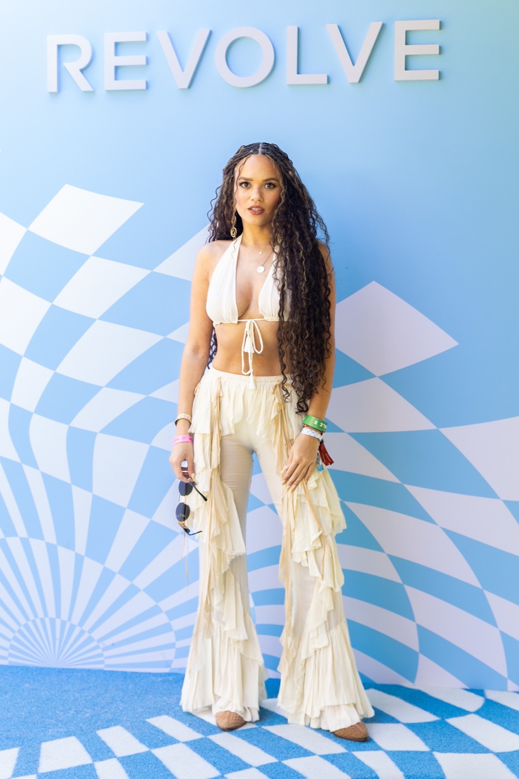 Madison Pettis, reine du festival Revolve à Palm Springs, ressemble à une divinité estivale qui aurait pris un selfie avec le soleil. Parée d’un ensemble crème qui donne l’impression d’avoir été confectionné par une troupe de lutins stylistes, elle arbore le look « bohème-chic-décontracté-mais-toujours-fabuleux ».