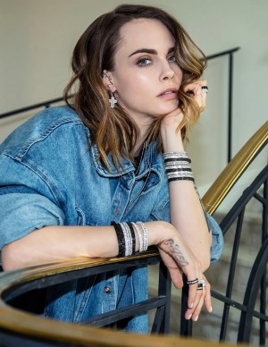 Et puis, la voilà grimpant sur une rambarde en jean oversized, comme une reine des défilés, faisant de l'escalier son podium personnel. Avec sa veste en jean qui pourrait presque parler tant elle est stylée, Cara prouve une fois de plus qu'elle peut tout porter avec panache.