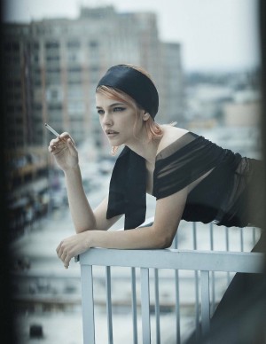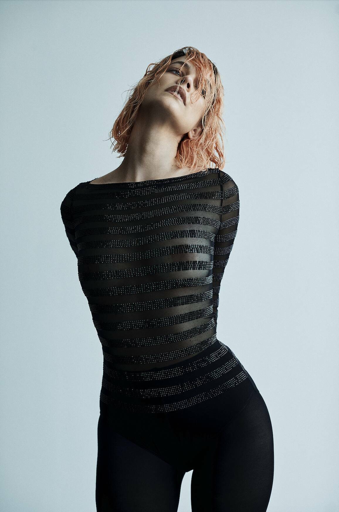 Son expression intense et presque intimidante rappelle aux lecteurs que la mode n'est pas seulement une question de vêtements, mais d'attitude. Une attitude qu'elle semble posséder en abondance, même en noir et blanc, assise de manière décontractée, mais oh combien calculée, près d'une fenêtre.