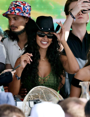 Ses boucles parfaitement sculptées dansent au rythme de la musique, tandis qu'elle savoure chaque moment de cette escapade ensoleillée. Après tout, qui a dit que l'on ne pouvait pas être la reine de la plage et de la fête en même temps ? Bravo, Maya, tu as tout compris.