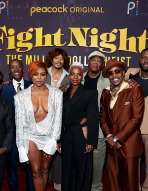 Dans une combinaison avant-gardiste qui semble inspirée par les uniformes des voleurs de haute voltige, Taraji P. Henson illumine la première de *Fight Night : The Million Dollar Heist*.