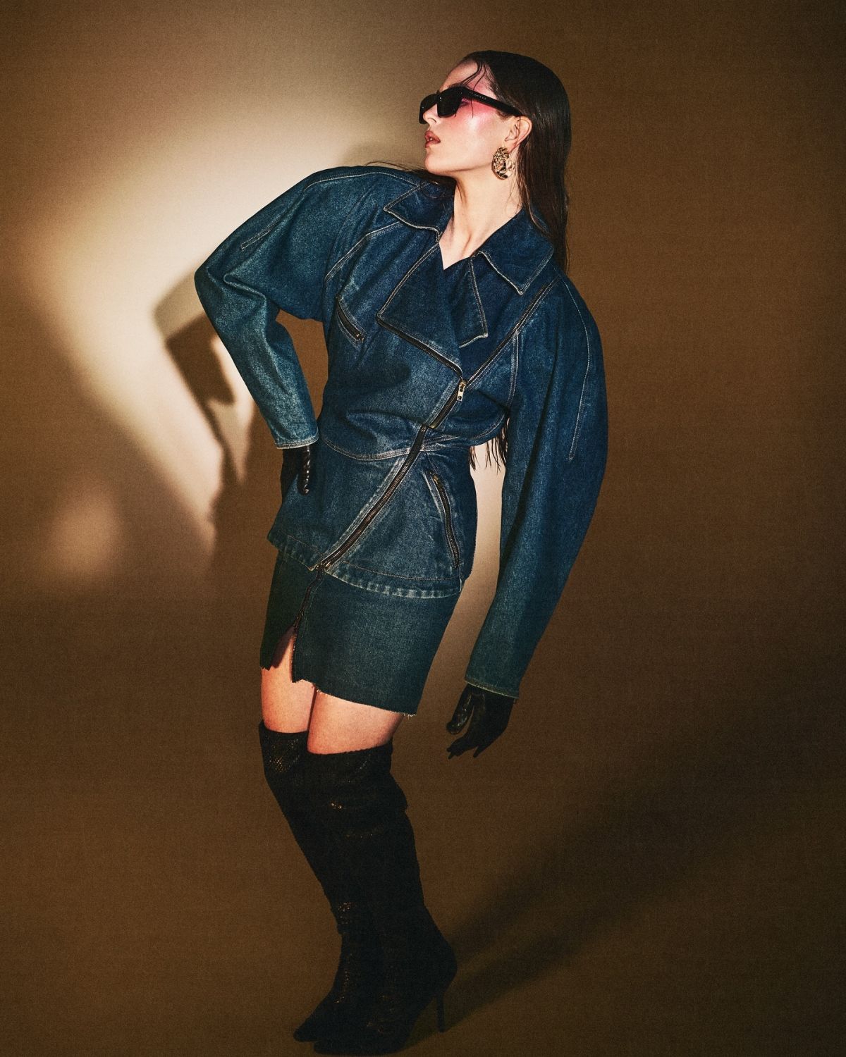 Habillée dans une palette chromatique qui défie les conventions, elle oscille entre la sophistication et une nonchalance qui pourrait faire pâlir une diva de cinéma muet. Mais attention, son expression dit tout : un mélange parfait de mystère et d’arrogance artistique, comme si elle avait inventé les poses que personne n’oserait jamais essayer.