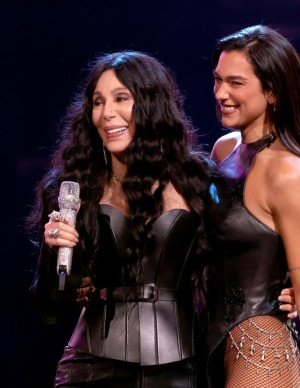 Son ensemble en cuir avec des détails scintillants et des bas résilles semblait presque trop cool pour cette planète, mais après tout, qui est mieux placé pour défier les lois de la mode que Dua ? Accompagnée de légendes de la musique, elle a fait vibrer le public avec ses performances enflammées.