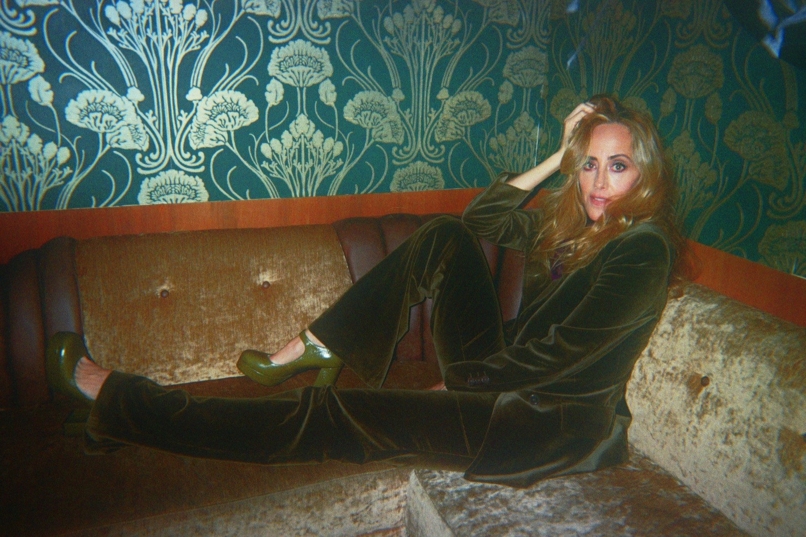 En léopard ou en velours olive, elle incarne une muse mi-désinvolte, mi-diva.