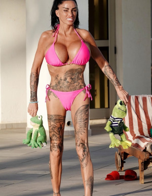Katie Price rayonne en bikini rose flashy sous le soleil de Chypre