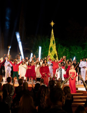 Sous les lumières scintillantes d'un sapin de Noël, où les boules dorées rivalisent de brillance avec les étoiles, une diva en robe rouge fait chanter l'esprit de Motown.