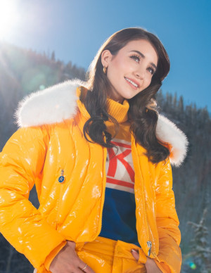 Habillée pour un "après-ski" qui ferait rougir même les flocons de neige, elle redéfinit le chic alpin. Entre la doudoune jaune vif et la combinaison noire glamour, Caylee semble prête à passer des pistes aux podiums. Même ses skis vintage deviennent des accessoires de haute couture !