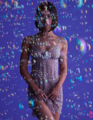 On se demande si elle a voulu nous rappeler que la vie est une bulle ou si elle a simplement perdu son pari sur le thème de la séance photo.