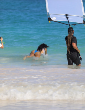 Oh, regardez-moi ça, Kim Kardashian en mode sirène glamour sur une plage paradisiaque, posant en bikini pour un shooting photo !
