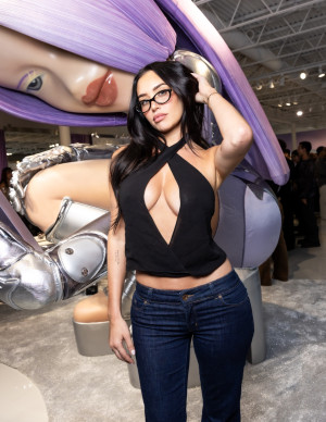 Anastasia Karanikolaou au lancement Gentle Monster x Bratz à Los Angeles ! Entre sa pose devant une poupée géante et son top plongeant, elle semble prête à voler la vedette aux Bratz elles-mêmes.