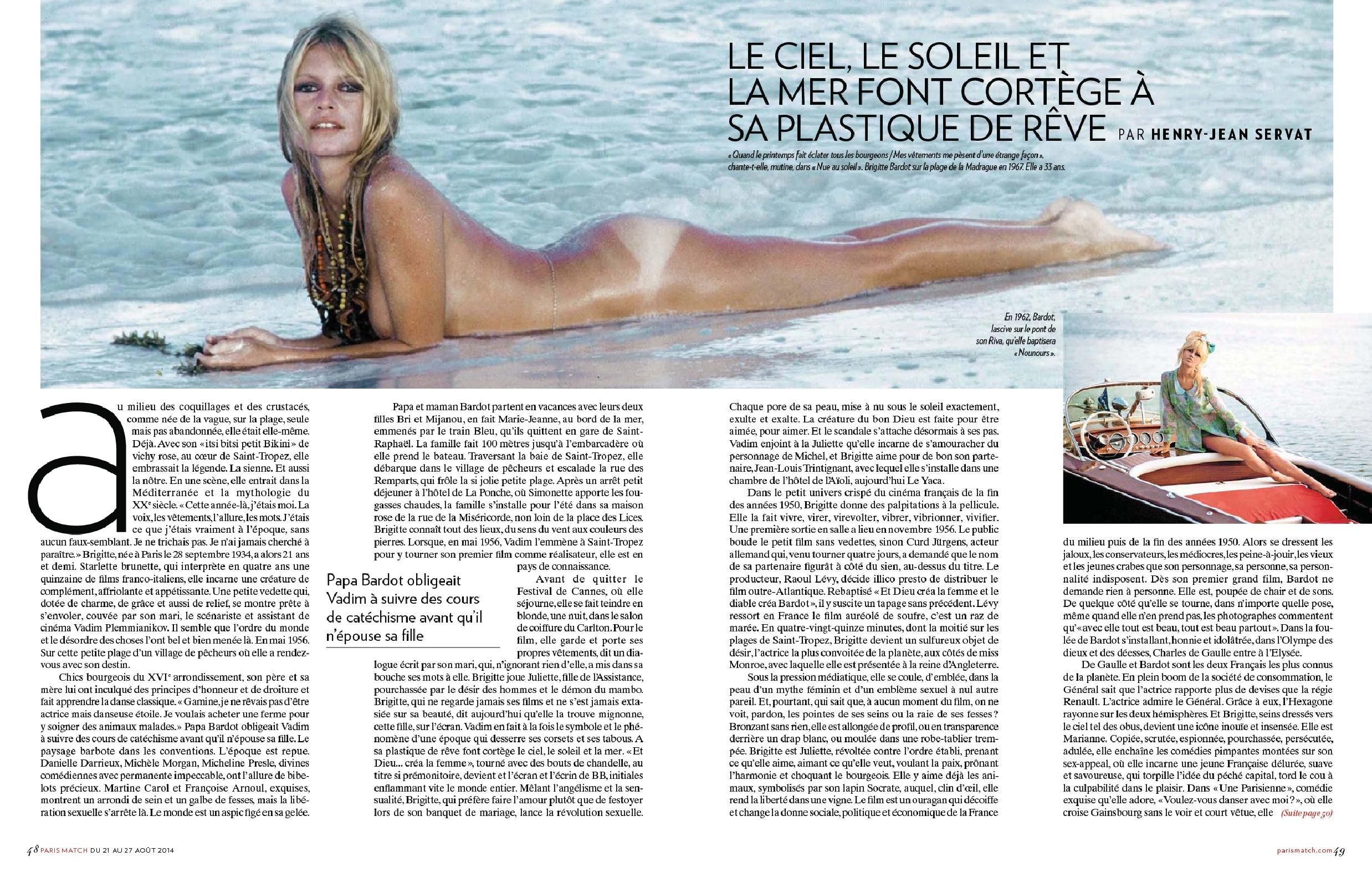 Brigitte Bardot dans Paris Match, numéro iconique publié en 2014