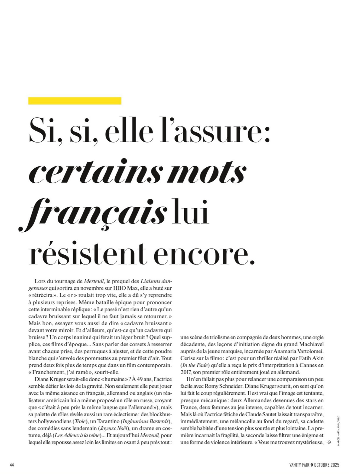 - 01/10/2025 - Diane Kruger captive dans Vanity Fair France, muse en noir satiné