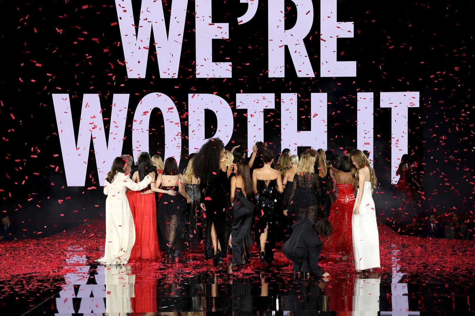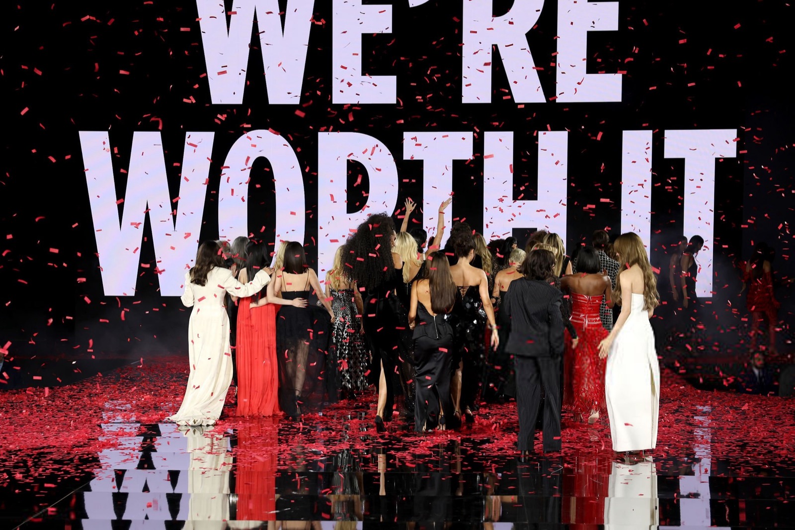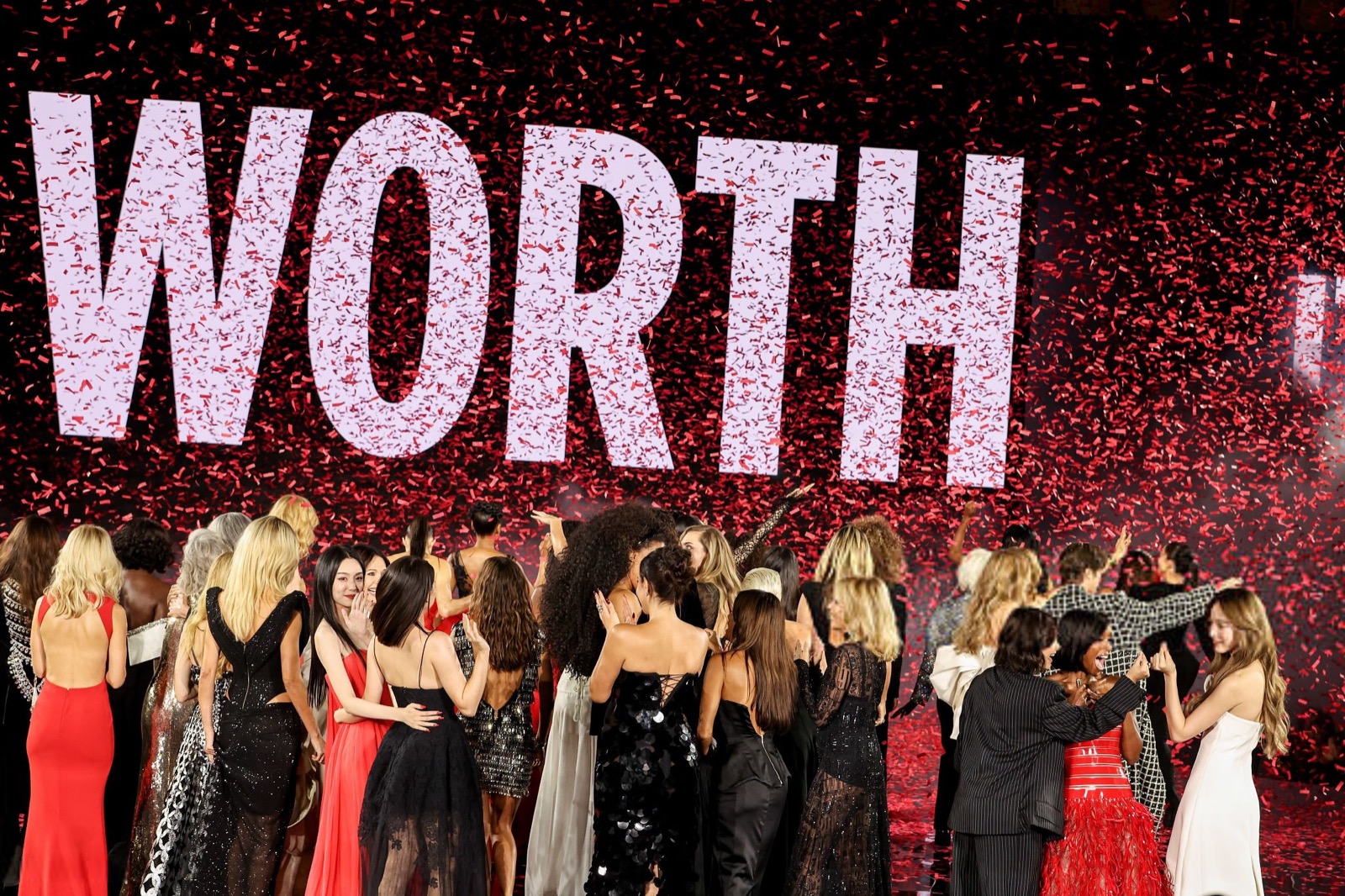 Ce défilé à Paris Fashion Week n’était pas seulement une ode au glamour, mais aussi une performance sarcastique : « Because you’re worth it », surtout si votre valeur se mesure en centimètres de tissu manquant.