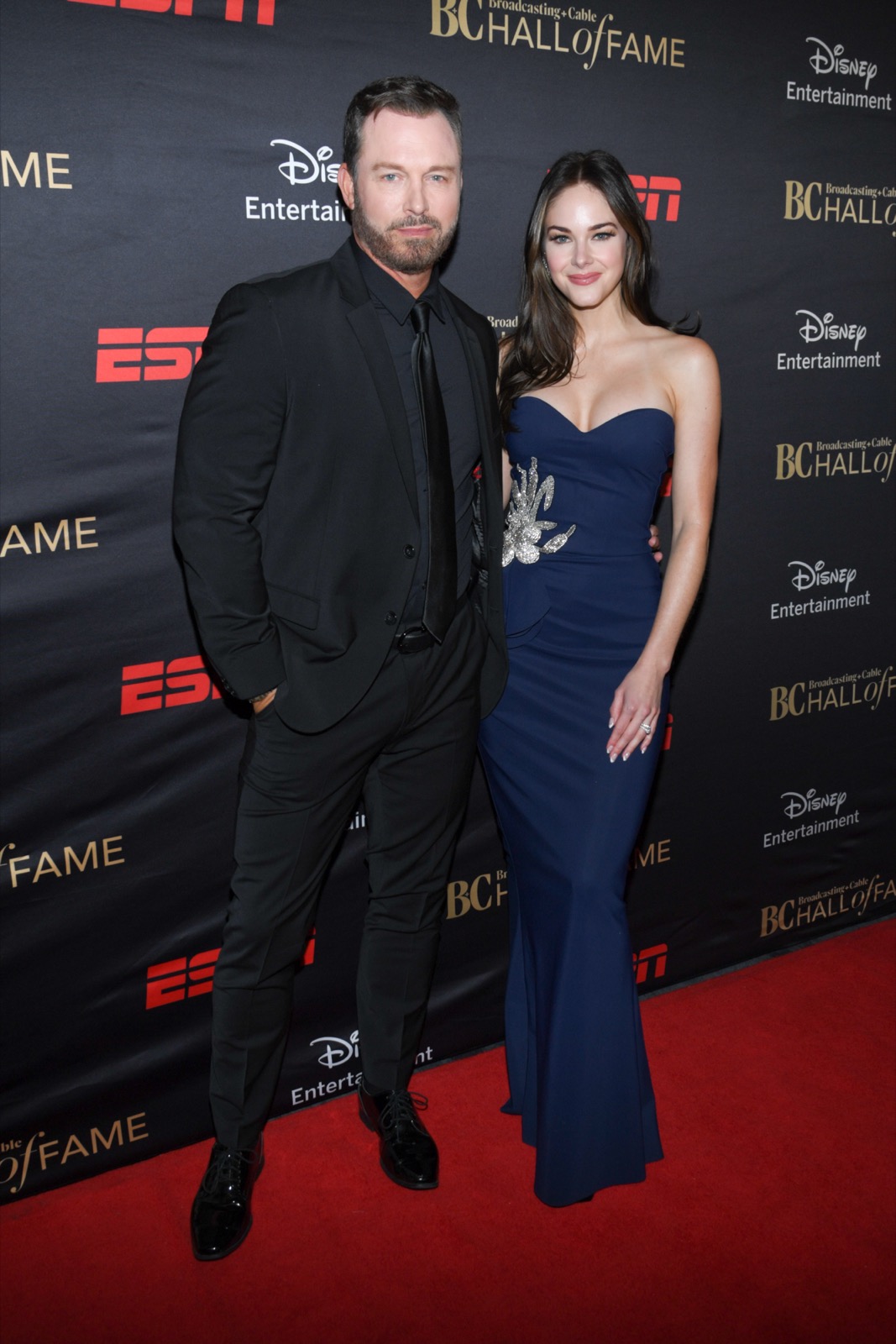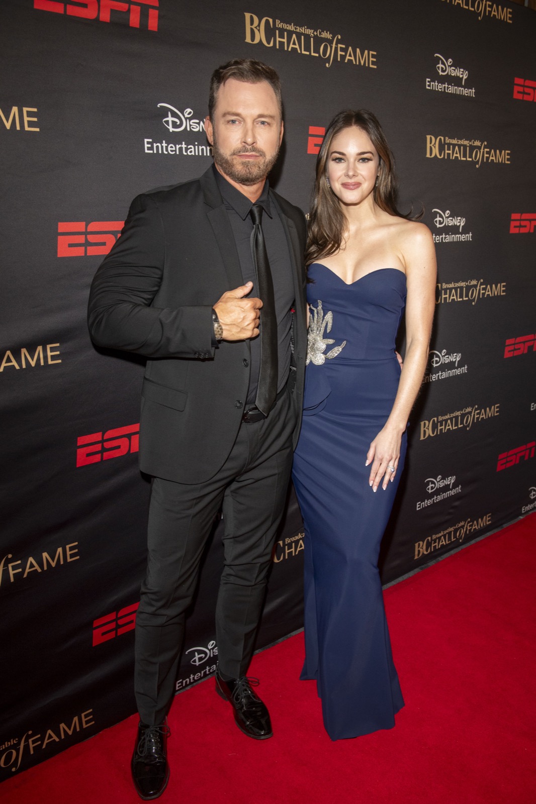 Sur le tapis rouge des Broadcasting + Cable Hall of Fame Awards, Abigail Klein irradie comme une héroïne de soap céleste. Sa robe bleu marine, sculptée à même la peau, épouse chaque courbe avant d’éclore en une fleur argentée, telle une caresse métallique sur un rêve éveillé.
