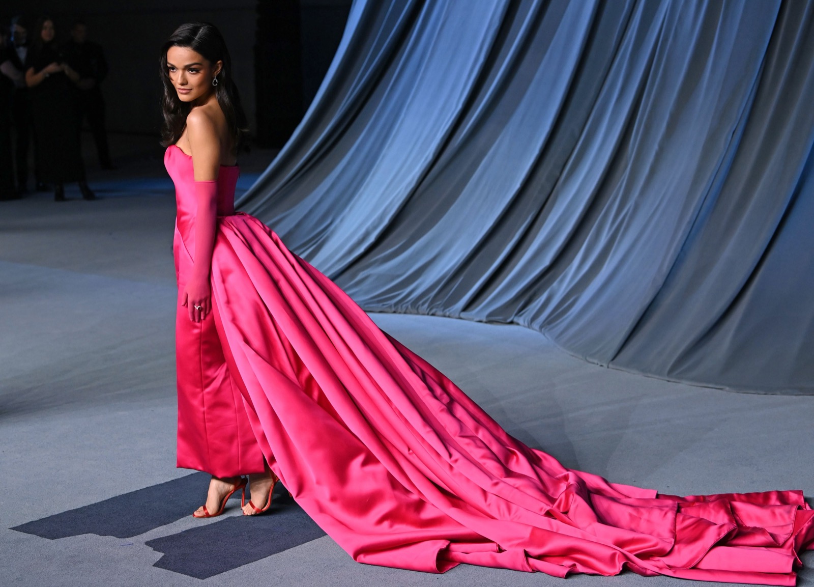 Dans son fourreau fuchsia, Rachel Zegler fait de la vertu une illusion d’optique au 5th Annual Academy Museum Gala. Le bustier épouse ses courbes comme un secret bien gardé, et la traîne, interminable, glisse derrière elle comme la preuve matérielle de son propre culte.