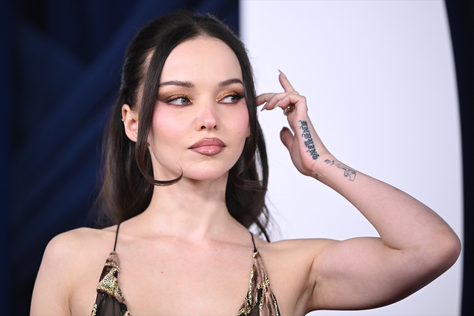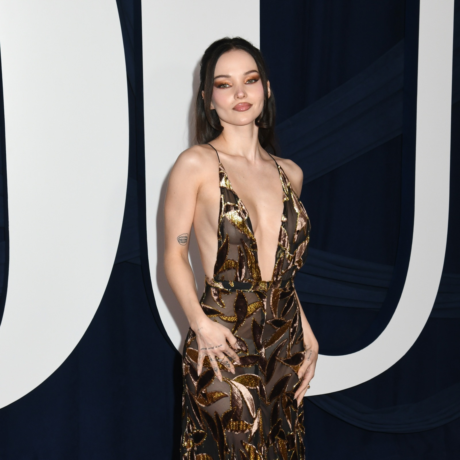 Dove Cameron s’avance sur le tapis rouge des Glamour Women of the Year Awards comme une sirène échappée d’un rêve vénéneux. Sa robe bronze et or avale la lumière, sa peau la renvoie comme un défi sensuel aux bonnes manières.