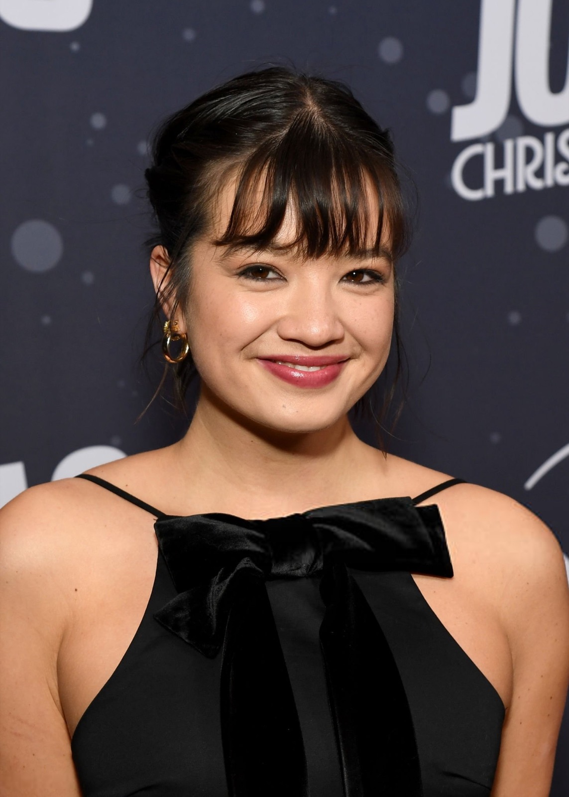 Sur le tapis rouge de A Very Jonas Christmas Movie, Peyton Elizabeth Lee joue la fausse ingénue version pin-up festive. Entre pois mutins et ruban noir démesuré, son look hésite entre cadeau bien emballé et surprise qu’on défait avec les dents.