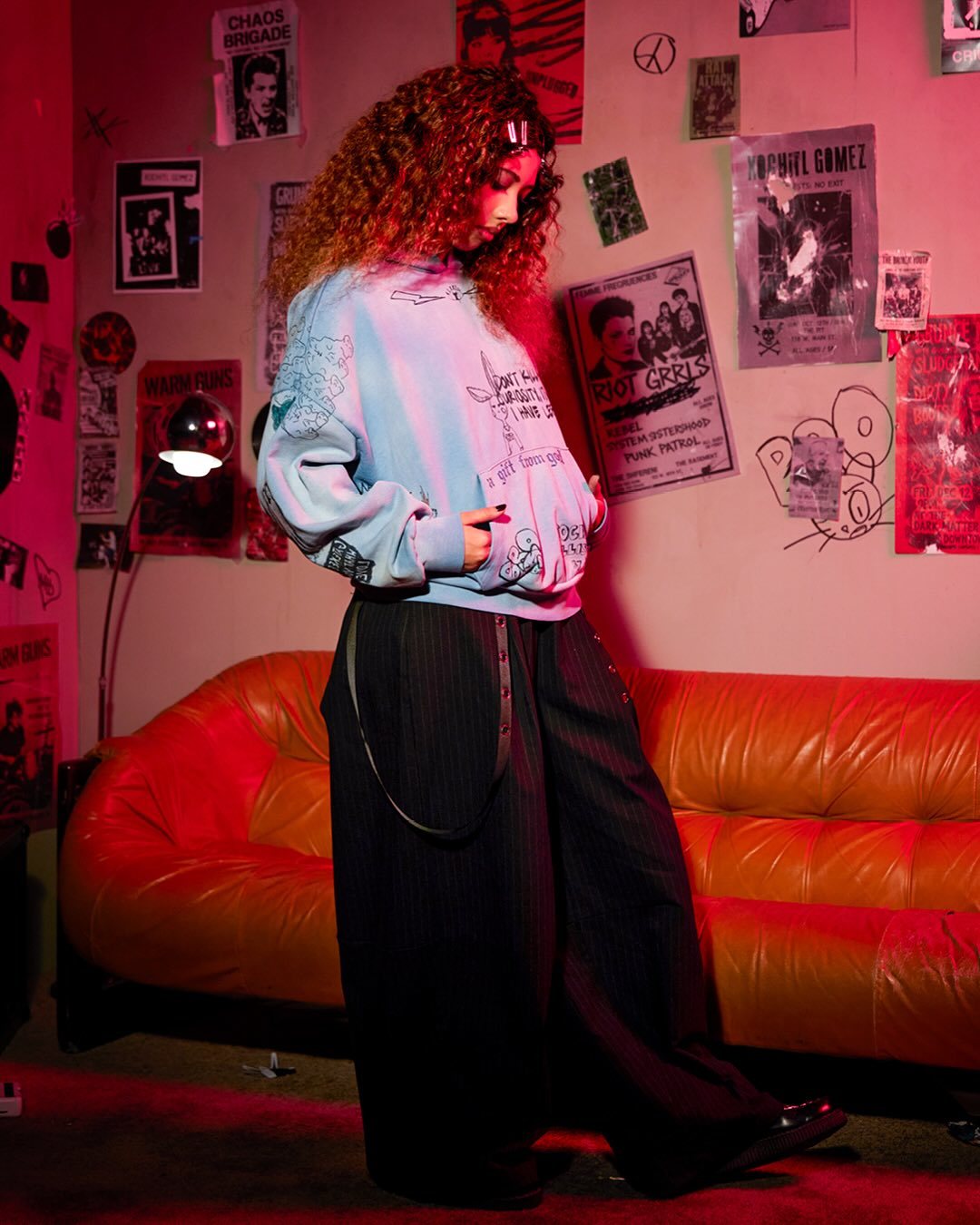 On retrouve même l’énergie insolente qui l’a portée dans Dancing With The Stars, transformant ce shooting en chorégraphie punk parfaitement contrôlée.