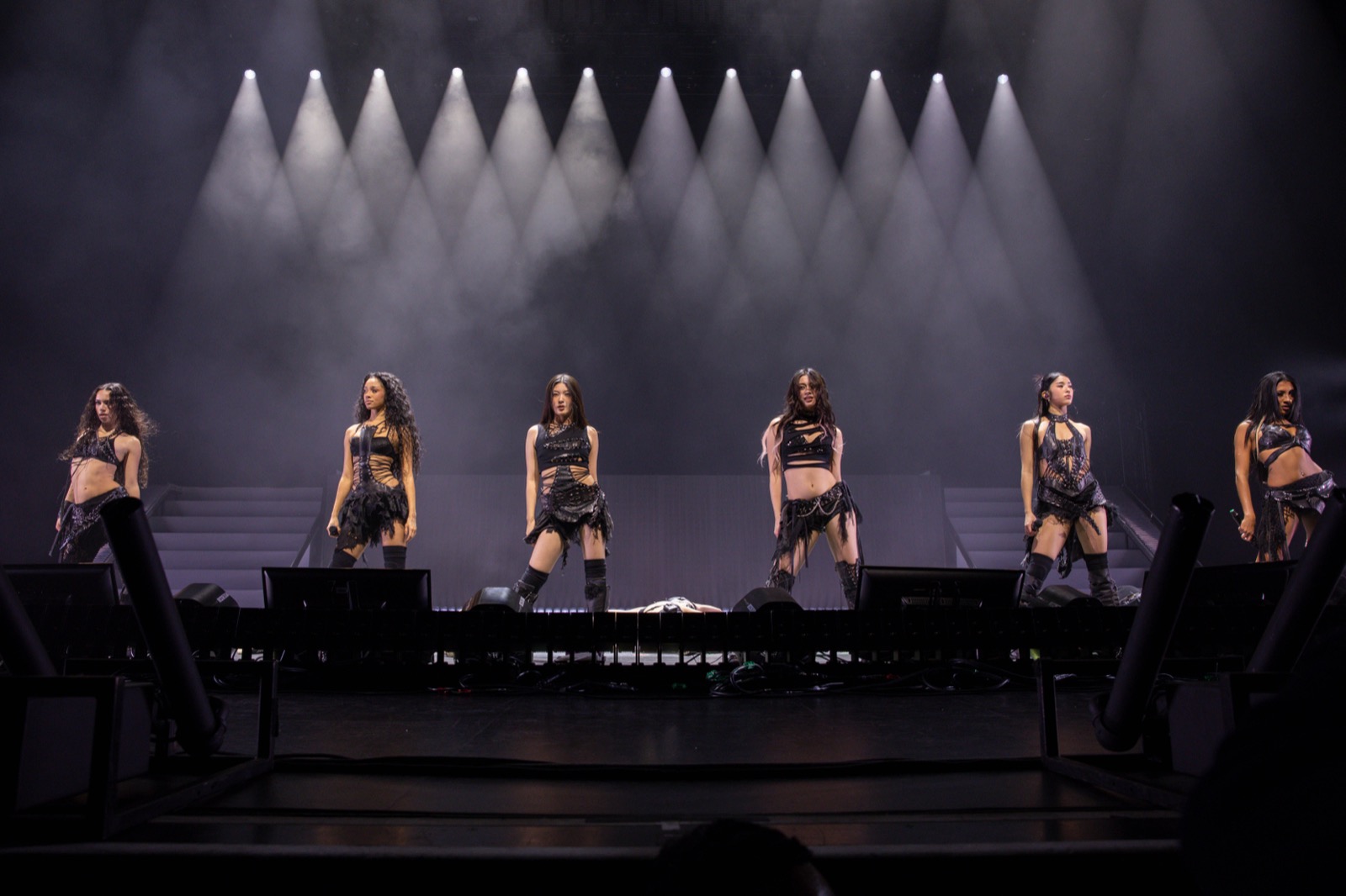 Katseye débarque à Inglewood comme une escouade de fantasmes parfaitement synchronisés, cuir noir affûté et sourires faussement sages. La scène ressemble à un ring, elles jouent à domicile.