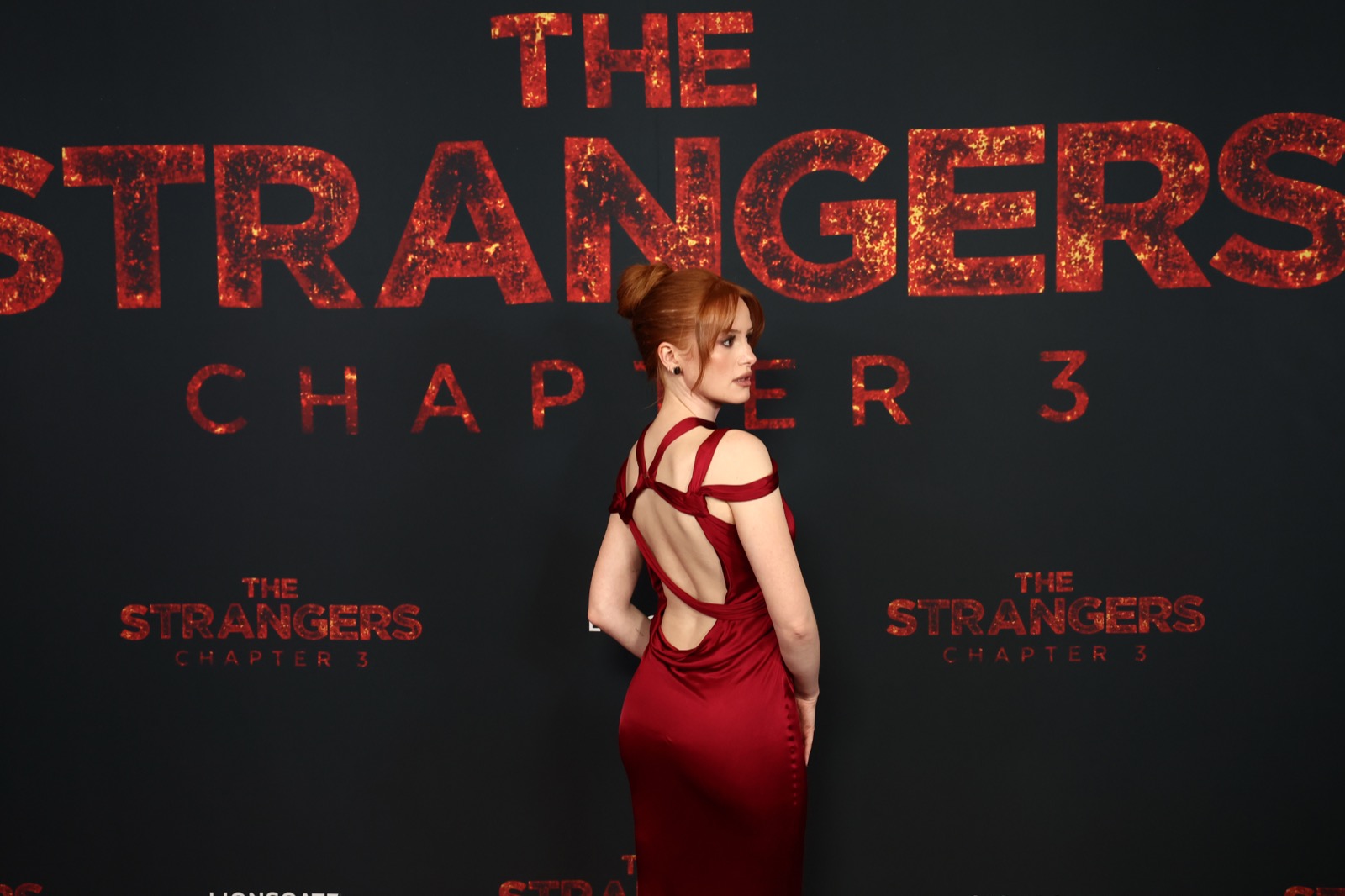 Madelaine Petsch en robe rouge tendue pour la projection spéciale de The Strangers
