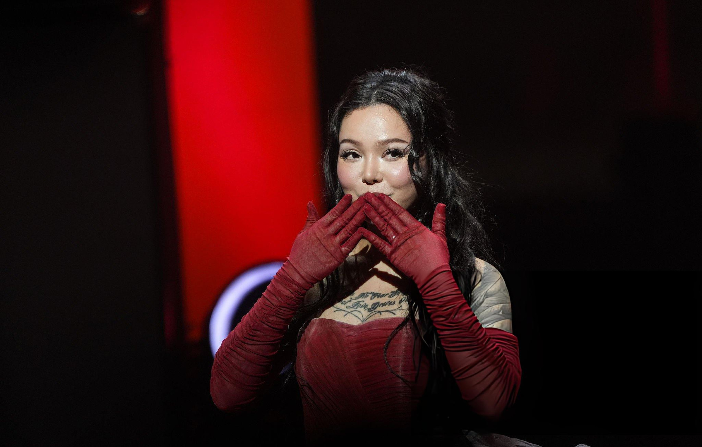 Bella Poarch au concert Go Red Women, corset serré et baiser lancé