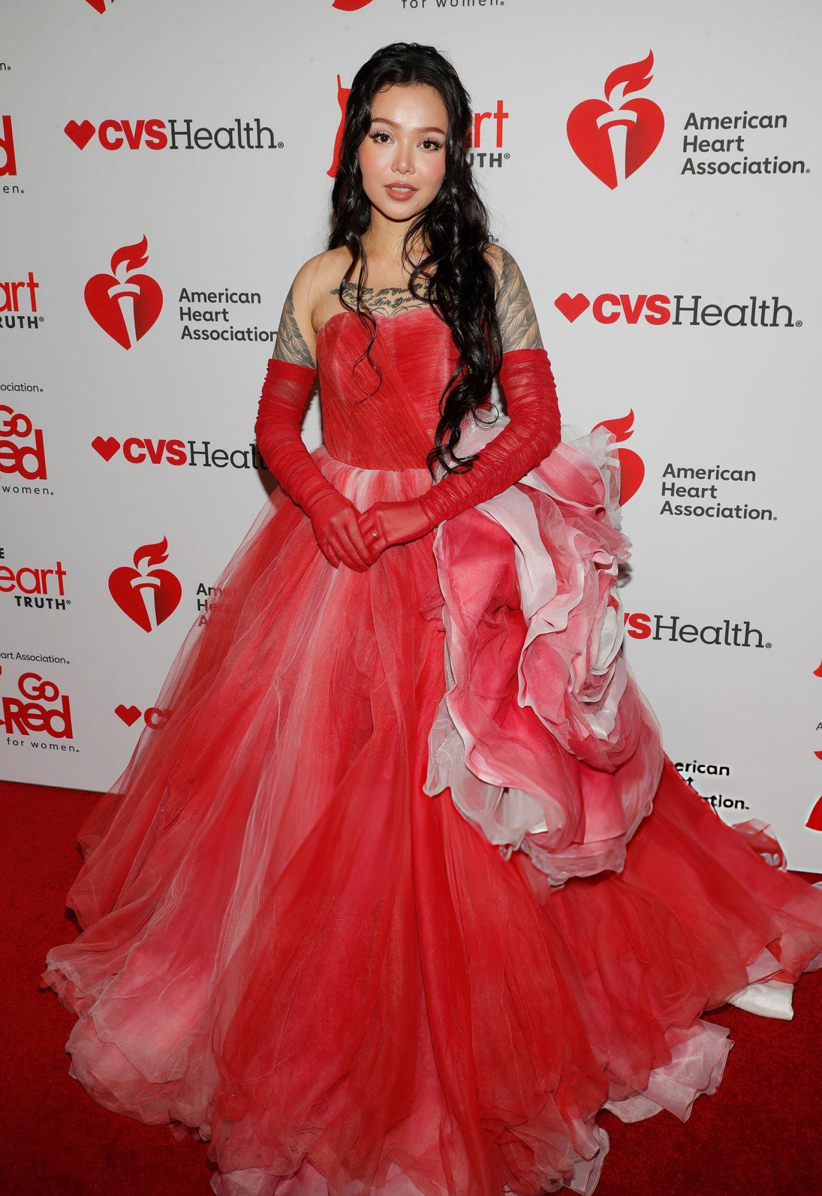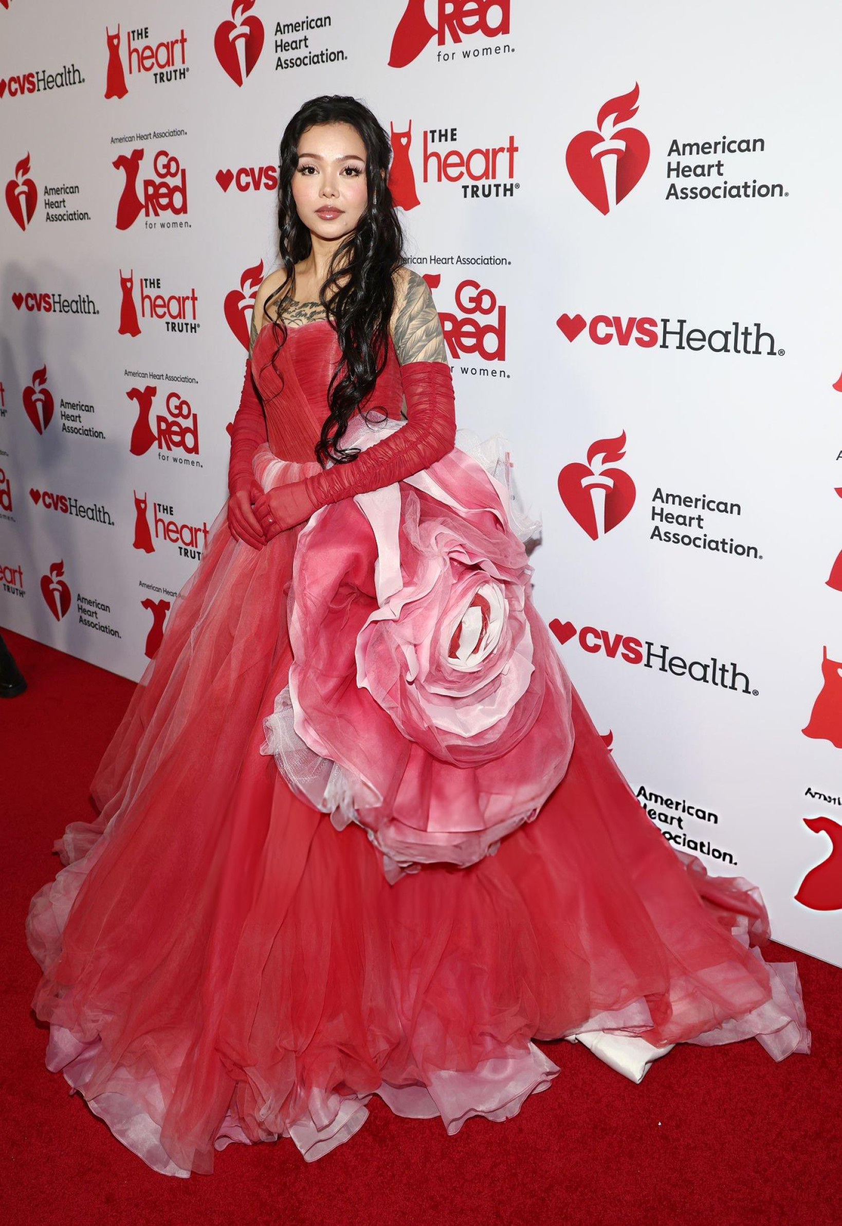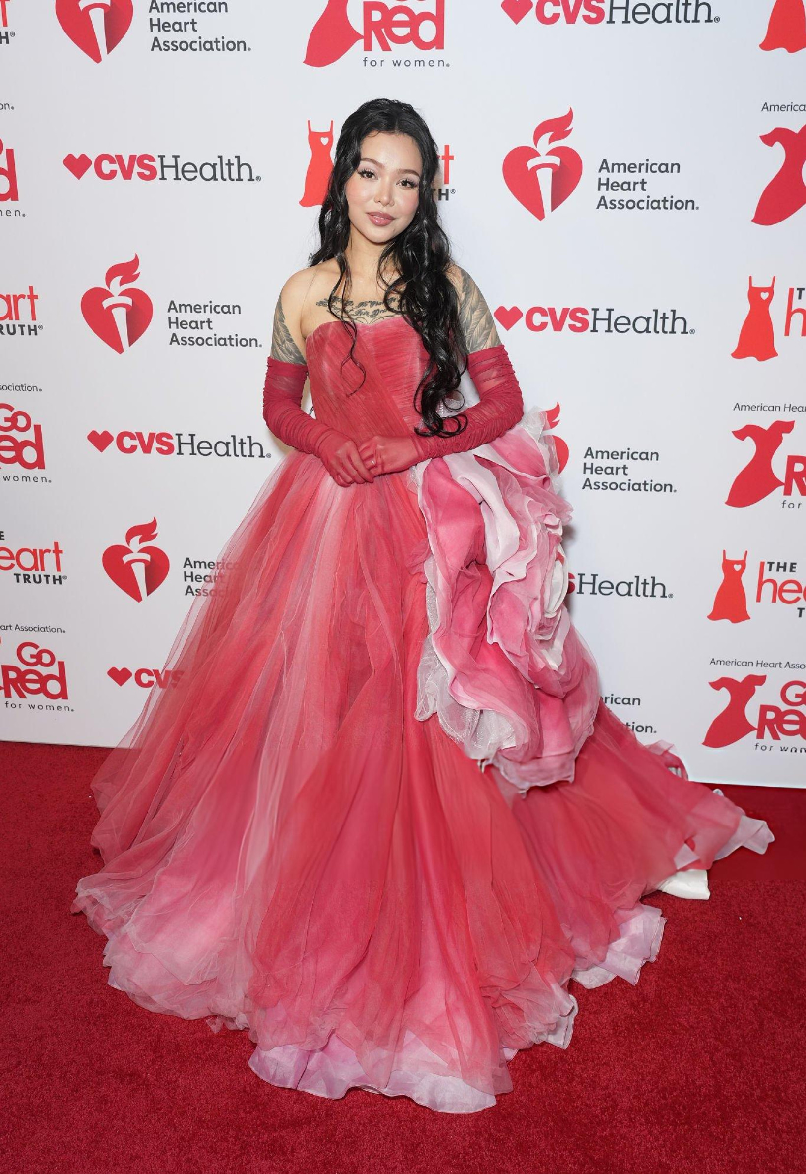 À New York, au concert Go Red Women de l’American Heart Association, vitrine caritative où mode et message se croisent, elle prête son image. Révélée sur TikTok puis lancée dans la musique, elle sait capter les battements.