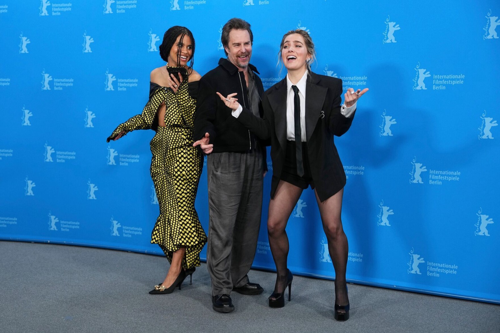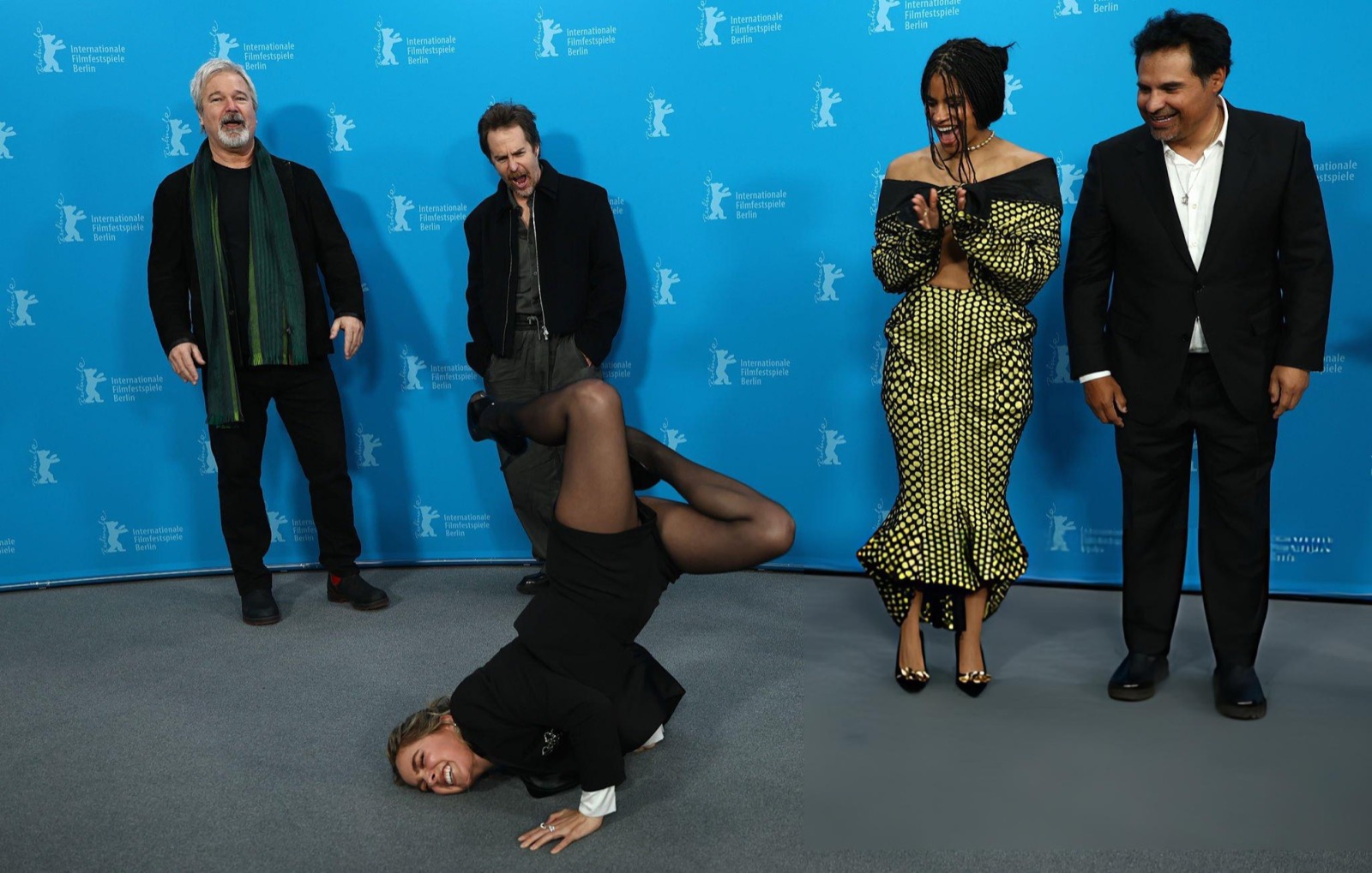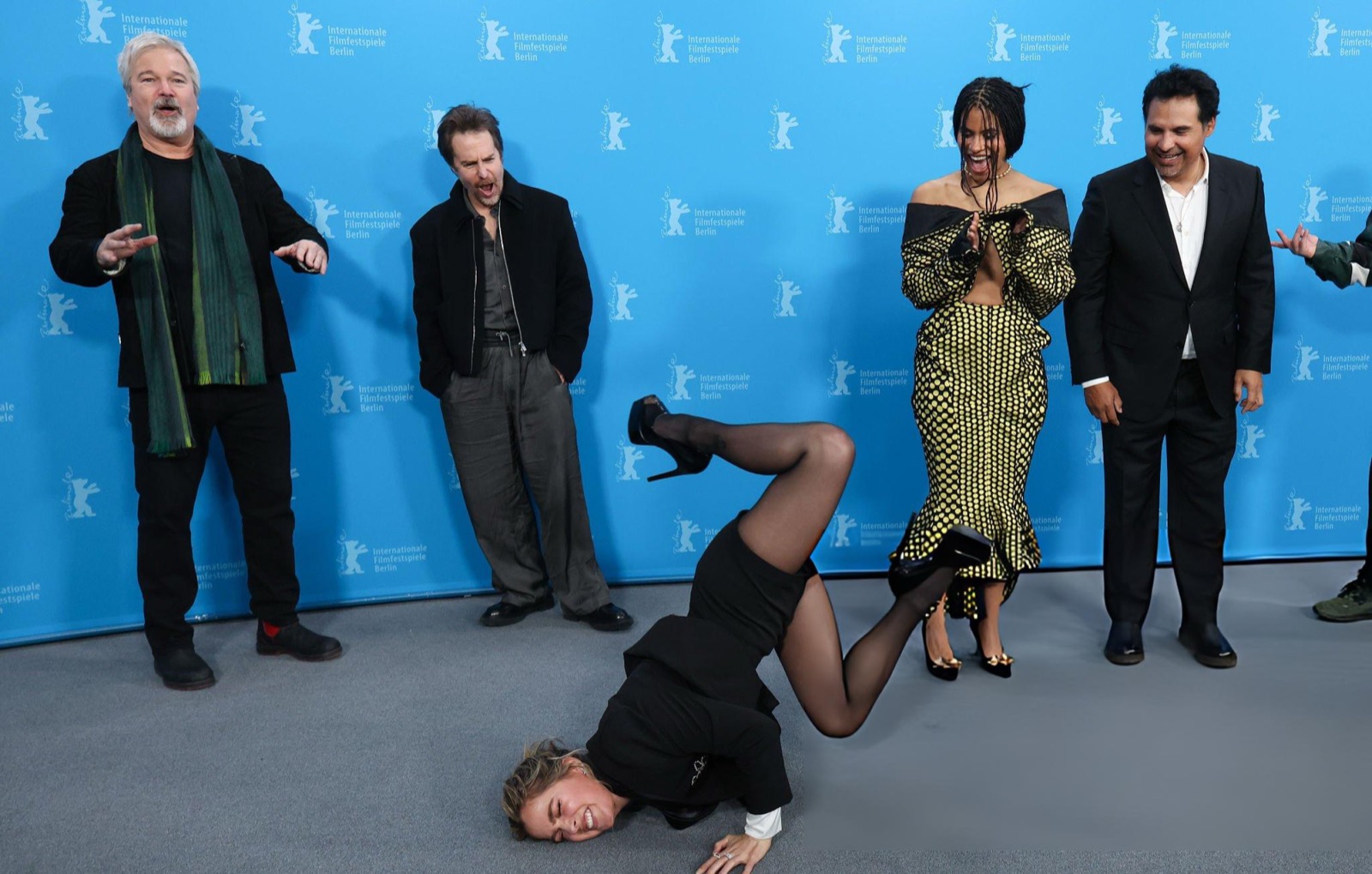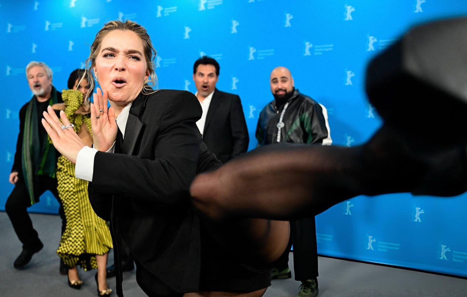 Au photocall du festival à Berlin, la veste devient micro-jupe et la robe à pois prend des initiatives. Officiellement on parle de films, officieusement le tapis rouge teste son adhérence face aux poses pédagogiques et dangereusement inclinées.