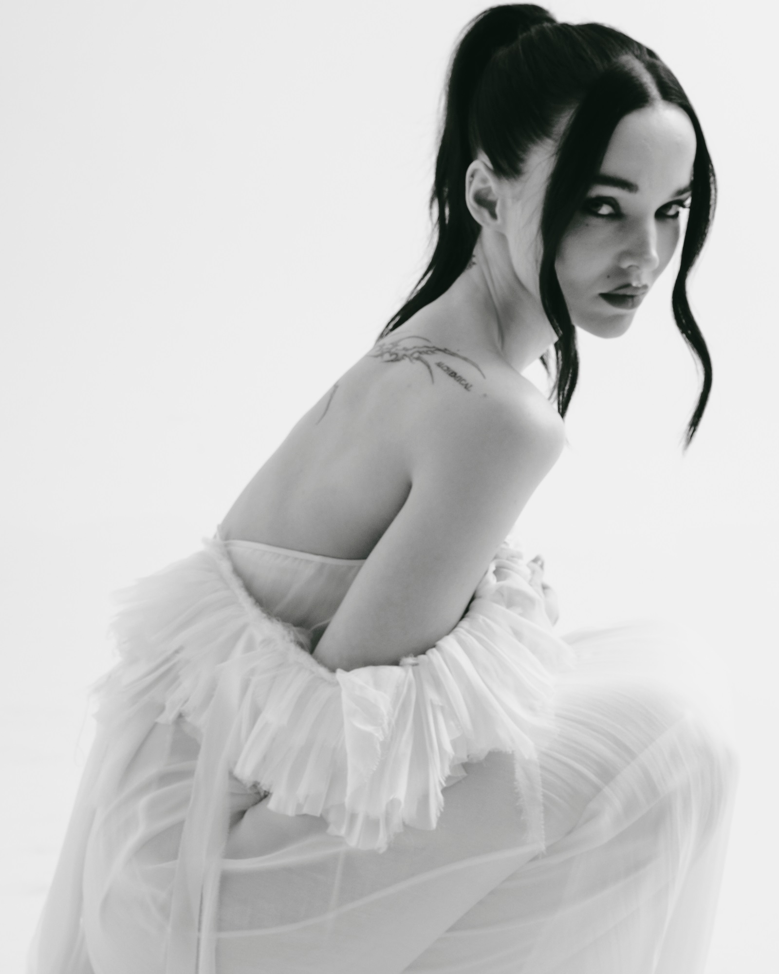 Dove Cameron en shooting WWD, ange candide, posture scandale