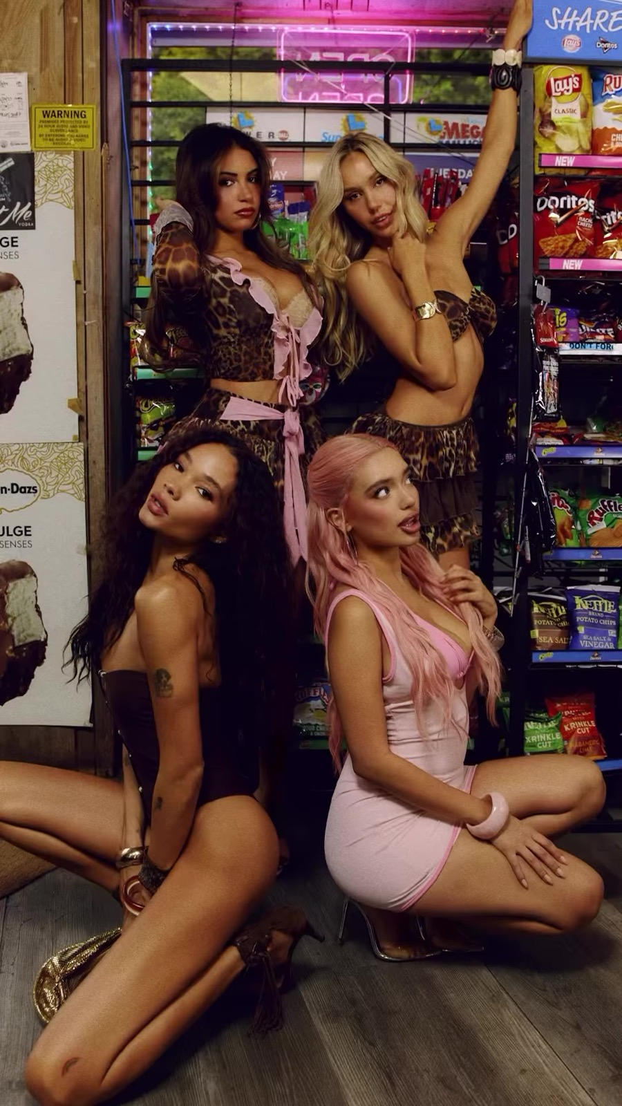 Entre panneau “Criminally Hot” et poses devant la voiture de police, le shooting prend des airs d’arrestation très volontaire. La mannequin fait monter la température plus vite que les gyrophares.