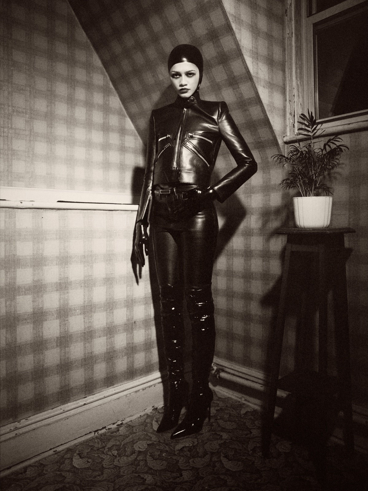 Puis en version cuir noir, la combinaison et les bottes hautes serrent l’atmosphère. Sur la couverture avec Robert Pattinson, la pose enlacée brouille les rôles : elle dirige, il respire. Résultat ? Une séance à New York qui fait transpirer l’objectif.