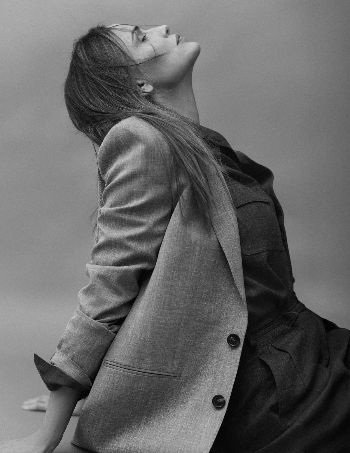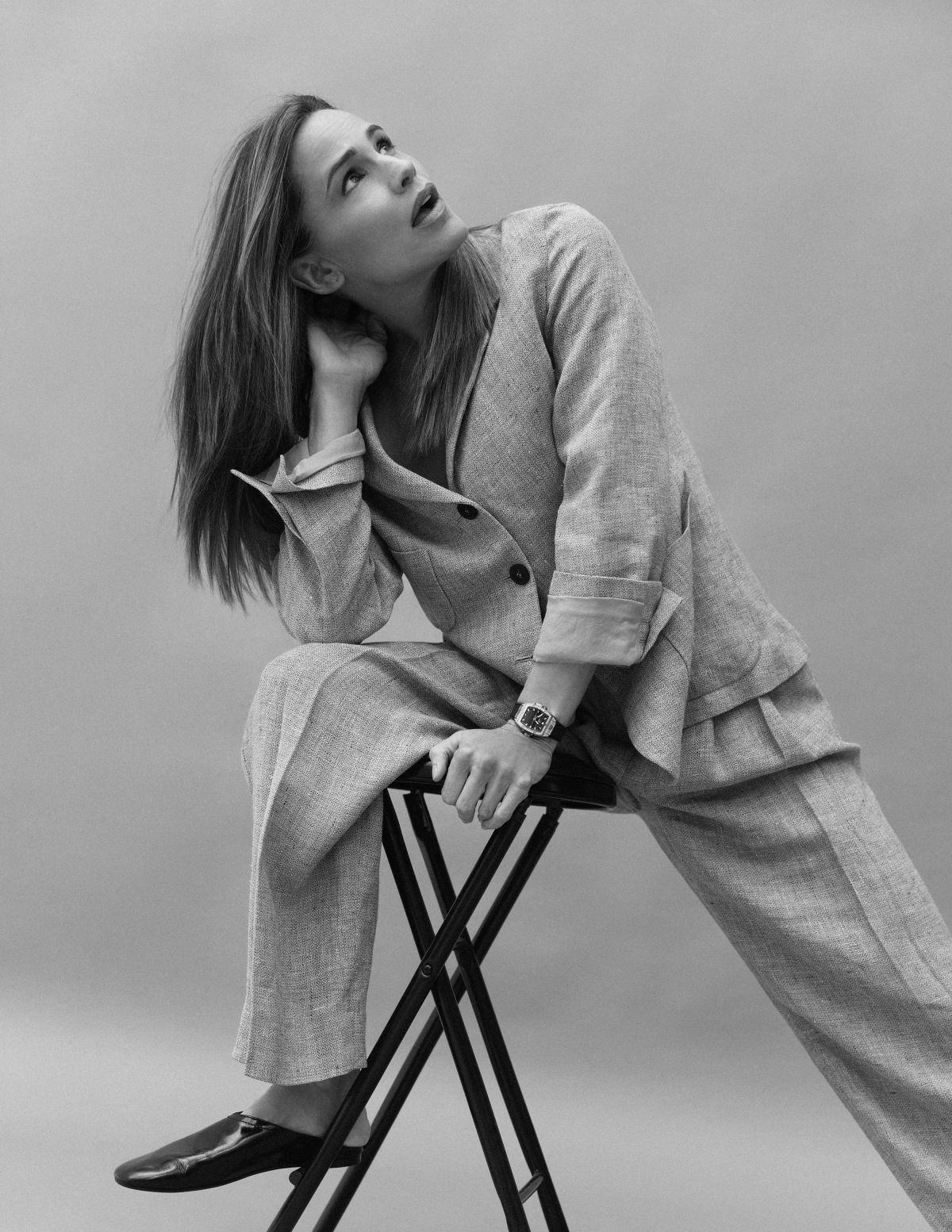 Actrice et élément clé de sa carrière depuis des années, elle joue la carte du regard fermé, main sur la nuque. L’élément marquant, c’est l’assurance tranquille : pas besoin d’en faire trop quand la coupe fait déjà le boulot.