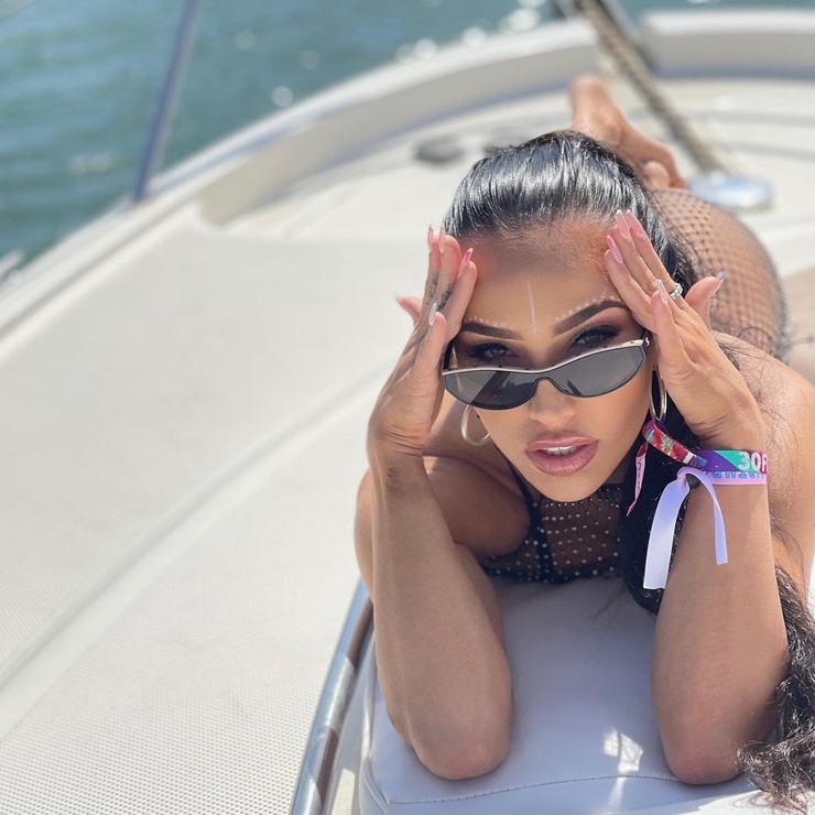(2 photos)Peinte en Mystique intégrale, elle transforme le trottoir en laboratoire charnel : radioactivité sexy, pudeur dissoute, paparazzi au garde-à-vous.