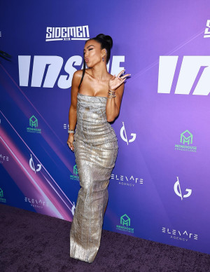 Caylee Cowan incendie la première de Robin Hood à Culver City dans une robe fendue au bord