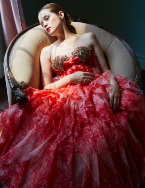 (14 photos)Debout, droite, bouche sombre, elle regarde l’objectif comme si la robe commandait, et que le corps suivait sans poser de questions.