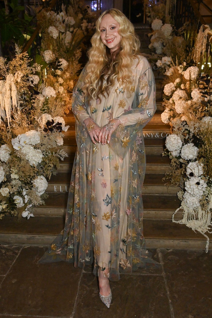 (3 photos)Ses boutons brillent tellement qu’on dirait qu’elle a volé les décorations du sapin du cinéma.