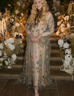 (42 photos)Avec sa robe fendue couleur caramel, on dirait qu’elle a décidé de défier la gravité… et la météo.