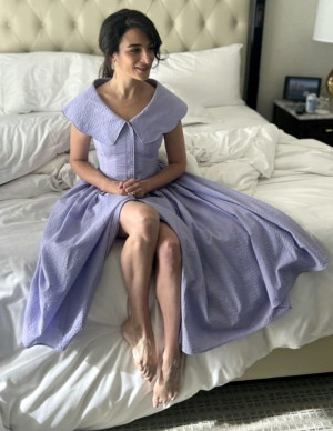 Amelia Gray Hamlin sort la nuit, et le pantalon fait semblant