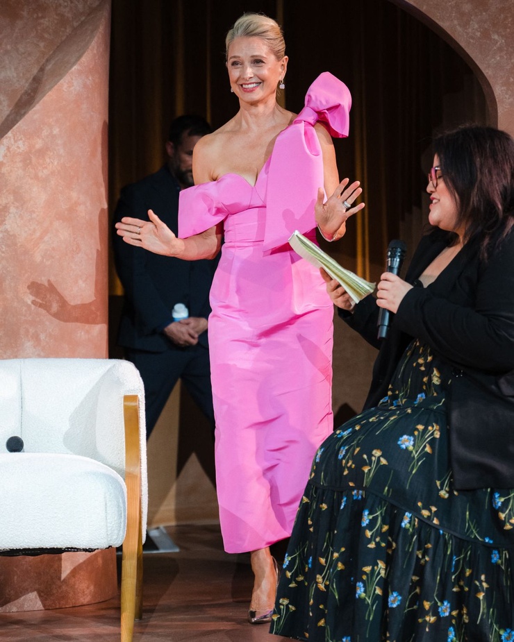 Katherine LaNasa à la première L.A. de The Pitt, robe corail en alerte