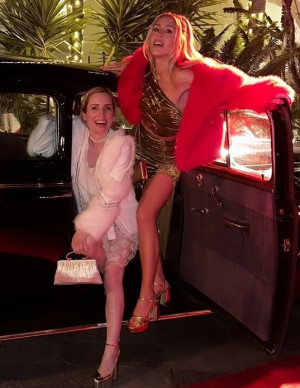 Rachel Sennott arrive à la soirée Frieze x STAUD, robe minuscule et regard clairement dang