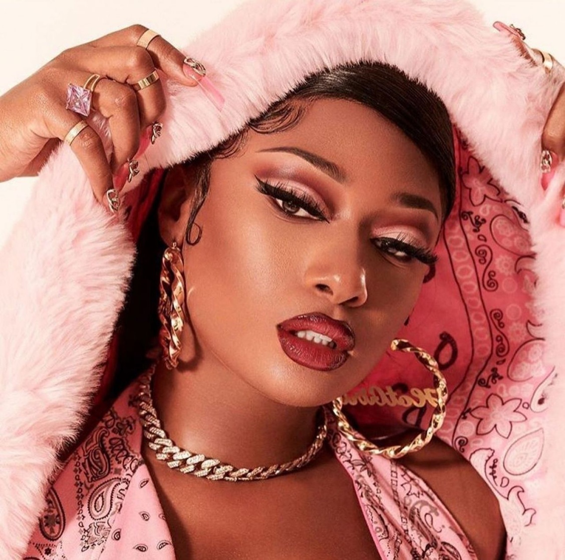 Megan Thee Stallion est une rappeuse, chanteuse et autrice-compositrice américaine. Élevée à Houston, elle découvre le rap à 14 ans et se lance dans la musique après ses études à la Texas Southern University. En 2018, son EP Tina Snow la propulse sur la scène hip-hop. Son single Savage (remix avec Beyoncé) et WAP avec Cardi B, tous deux numéro 1 au Billboard Hot 100 en 2020, consacrent sa notoriété.