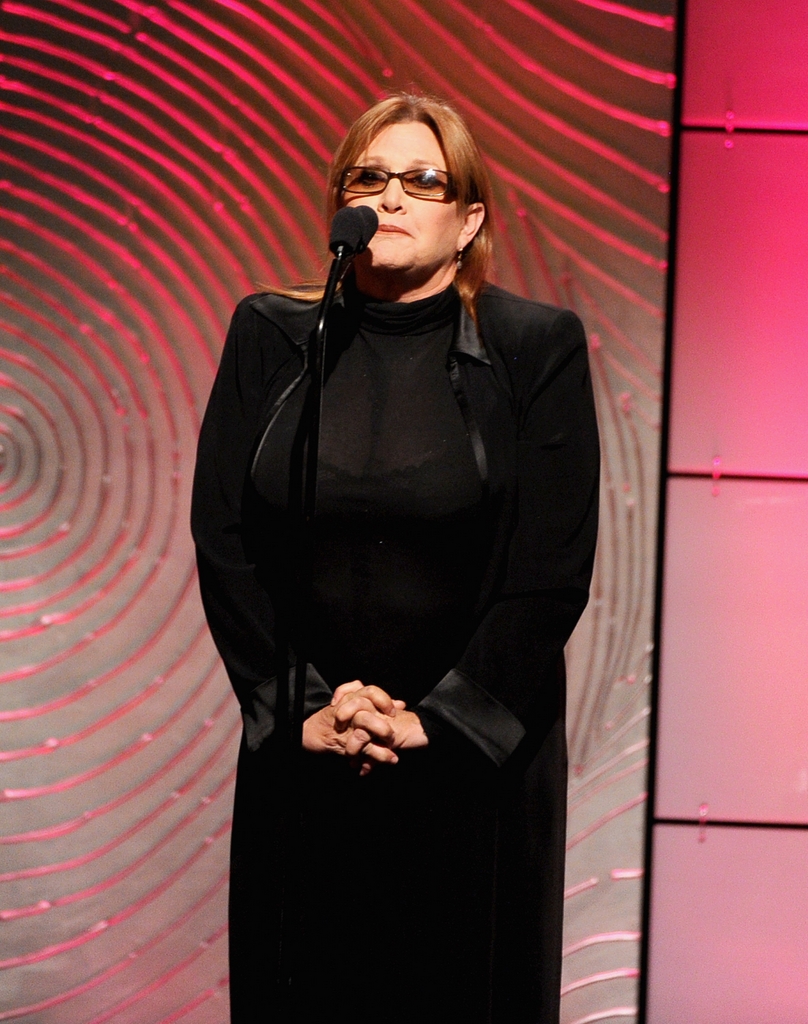 Carrie Fisher est une actrice et scénariste américaine. Elle est la fille de Debbie Reynolds et Eddie Fisher, et la demi-sœur de Joely Fisher et Tricia Leigh Fisher.