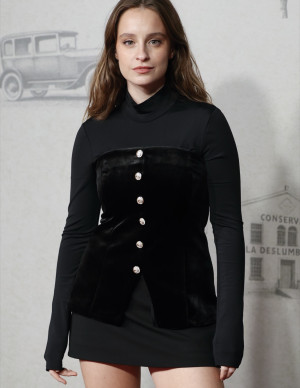 (3 photos)Ses boutons brillent tellement qu’on dirait qu’elle a volé les décorations du sapin du cinéma.