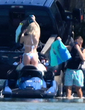 Sydney Sweeney en bikini blanc en virée jetski chez elle en Floride