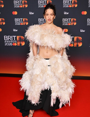 (2 photos)Aux BRIT Awards 2026 à Manchester, Rosalía arrive couverte de plumes… et soudain on ne sait plus si c’est un tapis rouge ou une scène d’opér...