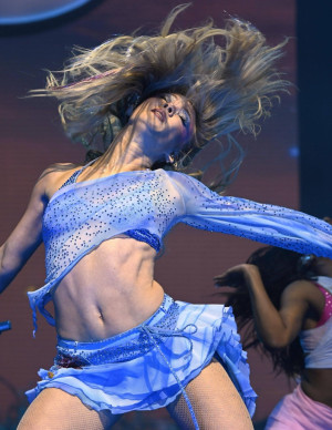(8 photos)Avec cette coiffure acrobatique et ces talons à roulettes, on dirait qu’elle prépare un braquage stylé du rayon mode.